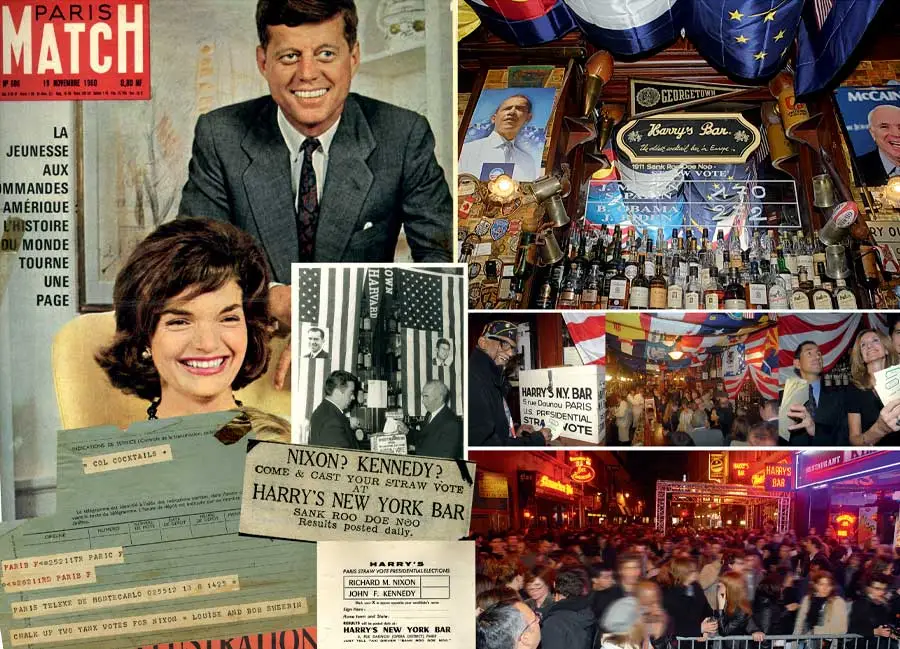 Le Harry’s Bar a institué dès 1924 un vote factice. Il démarre un mois avant le jour officiel du vote aux Etats-Unis… Permettant aux américains à Paris, lors de la période électorale, de voter. Les résultats provisoires sont affichés régulièrement.
